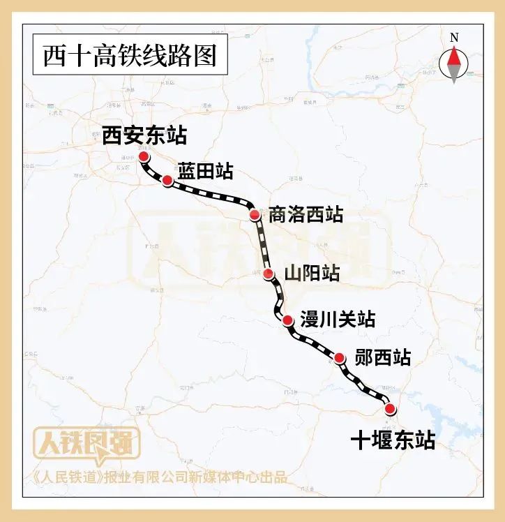 西十高鐵正線全長255.7公里,設(shè)計(jì)時(shí)速350公里,途經(jīng)西安、商洛、十堰三市,接入已建成的漢十高鐵。