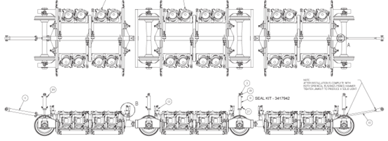 PGM96C鋼軌打磨車的作業(yè)小車由3個(gè)單元拼接而成,每個(gè)單元上安裝有8臺(tái)打磨電機(jī),即每臺(tái)作業(yè)小車共有24個(gè)打磨電機(jī),如圖一所示:
