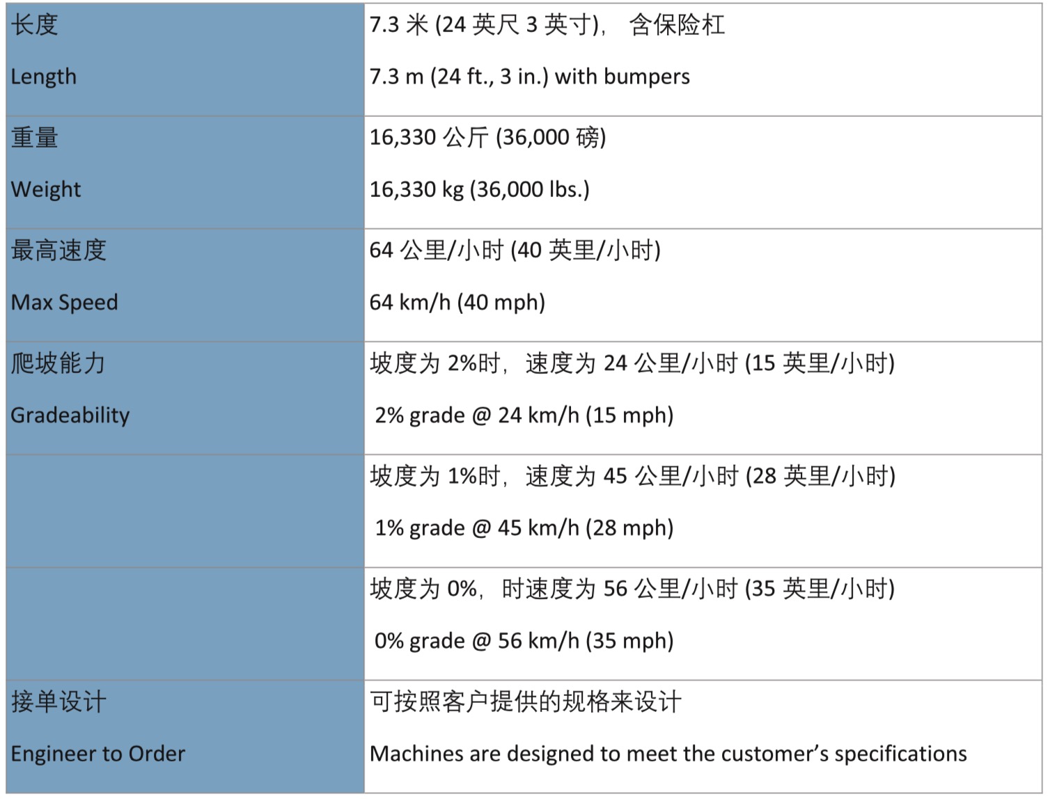 • 最高運(yùn)行速度可達(dá)40英里/小時(shí)64公里/小 時(shí))